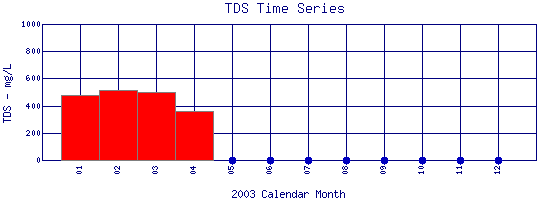 Total Dissolved Solids Time Series for 2003 Boulder Creek Above Coal Creek |