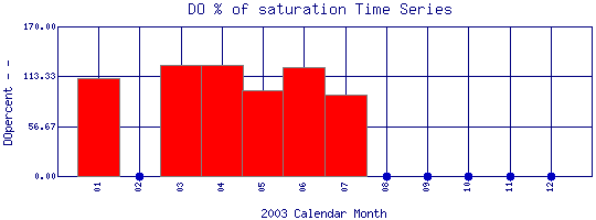 DO Percent of Saturation Time Series for 2003 Boulder Creek above Dry Creek |
