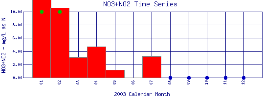 Nitrate + Nitrite Time Series for 2003 Boulder Creek above Dry Creek |