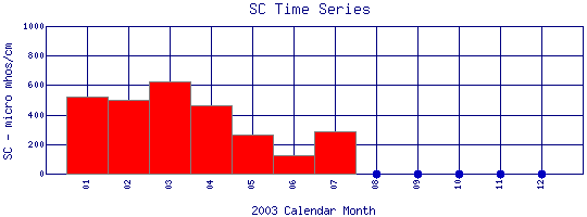 Specific Conductance Time Series for 2003 Boulder Creek above Dry Creek |