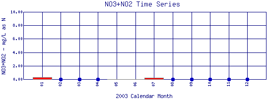 Nitrate + Nitrite Time Series for 2003 Middle Boulder Creek Above North Boulder Creek Confluence |