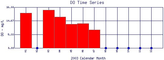 Select on the parameter name to view all Dissolved Oxygen time series plots on the basin map.