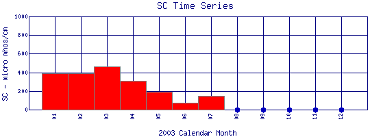 Specific Conductance Time Series for 2003 Boulder Creek above WW Plant |