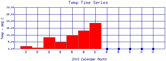 Water Temperature Time Series for 2003 Boulder Creek above WW Plant |