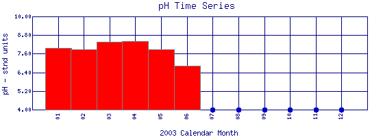 pH Time Series for 2003 Boulder Creek above WW Plant |