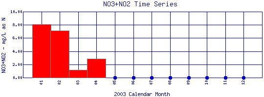 Nitrate + Nitrite Time Series for 2003 Boulder Creek Below Coal Creek |