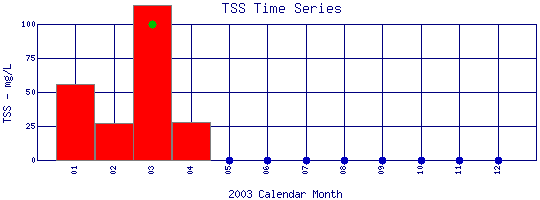 Total Suspended Solids Time Series for 2003 Boulder Creek Below Coal Creek |