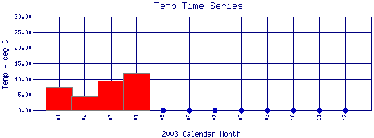Water Temperature Time Series for 2003 Boulder Creek Below Coal Creek |