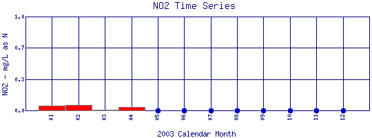 Nitrite Time Series for 2003 Coal Creek Above Boulder Creek Confluence |