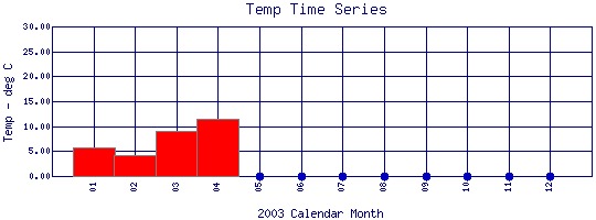 Water Temperature Time Series for 2003 Coal Creek Above Boulder Creek Confluence |