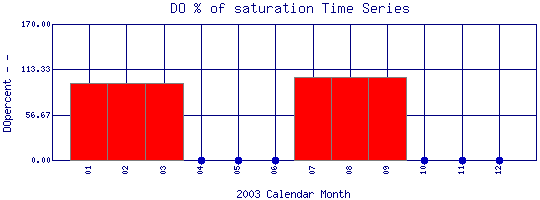 DO Percent of Saturation Time Series for 2003 Como Creek where it enters Lakewood Res. |