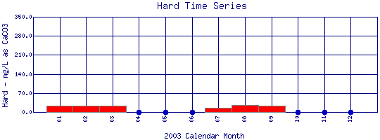 Total Hardness Time Series for 2003 Como Creek where it enters Lakewood Res. |
