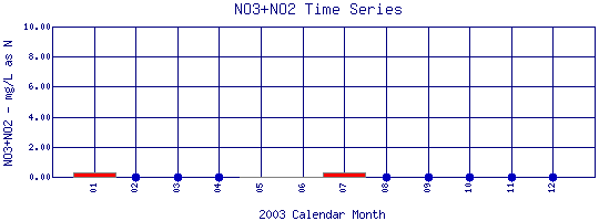 Nitrate + Nitrite Time Series for 2003 North Boulder Creek at Boulder Falls |