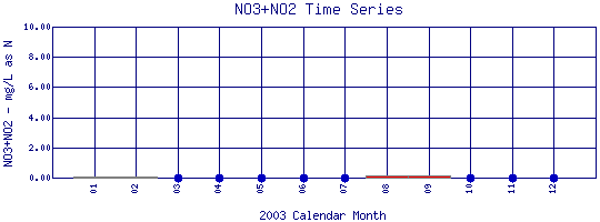 Nitrate + Nitrite Time Series for 2003 Silver Lake Pipe outfall in Lakewood Reservoir |