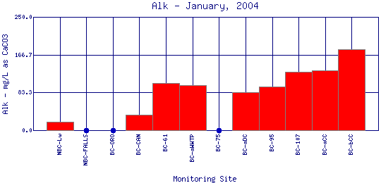 Alkalinity refers to how well a water body can neutralize acids. Alkalinity measures the amount of alkaline compounds in water, such as carbonates (CO3 2-), bicarbonates (HCO3 -), and hydroxides (OH-). These compounds are natural buffers that can remove excess hydrogen ions that have been added from sources such as acid rain or acid mine drainage. Alkalinity mitigates or relieves metals toxicity by using available HCO3 - and CO3 2- to take metals out of solution, thus making it unavailable to fish. Alkalinity is affected by the geology of the watershed; watersheds containing limestone will have a higher alkalinity than watersheds where granite is predominant. The Boulder Creek Watershed is composed primarily of granite rocks, thus the water has a lower alkalinity content.