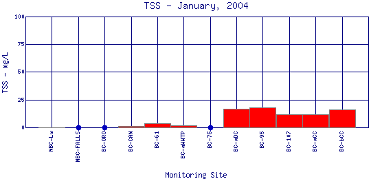 Longitudinal Total Suspended Solids Profiles for January, 2004