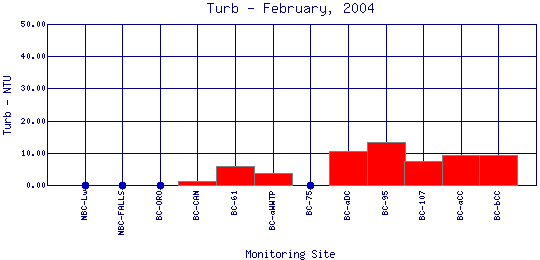 Turbidity is a measure of the cloudiness of the water. Cloudiness is caused by suspended solids or organic matter including silt, microorganisms, plant fibers, sawdust chemicals and coal dust. High levels of turbidity can block light from reaching submerged aquatic vegetation and can raise surface water temperatures because the suspended particles absorb heat from sunlight. The most frequent causes of turbidity are from logging, road and building construction, and mining activity. Turbidity affects fish by decreasing light penetration thus reducing the amount of photosynthesis taking place in the water. This reduces the amount of oxygen available to fish. Large amounts of suspended solids can also clog fish gills, and it affects their ability to see and catch foo