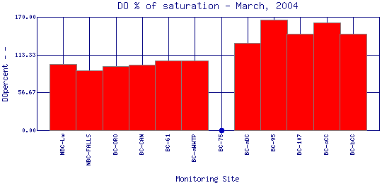 Longitudinal DO Percent of Saturation Profiles for March, 2004
