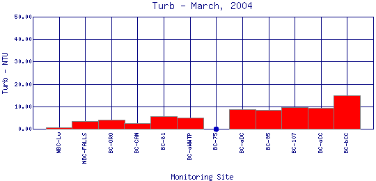 Turbidity is a measure of the cloudiness of the water. Cloudiness is caused by suspended solids or organic matter including silt, microorganisms, plant fibers, sawdust chemicals and coal dust. High levels of turbidity can block light from reaching submerged aquatic vegetation and can raise surface water temperatures because the suspended particles absorb heat from sunlight. The most frequent causes of turbidity are from logging, road and building construction, and mining activity. Turbidity affects fish by decreasing light penetration thus reducing the amount of photosynthesis taking place in the water. This reduces the amount of oxygen available to fish. Large amounts of suspended solids can also clog fish gills, and it affects their ability to see and catch foo