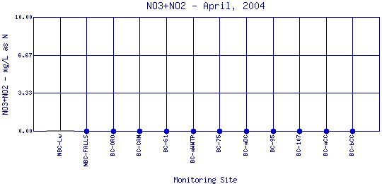 Longitudinal Nitrate + Nitrite Profiles for April, 2004