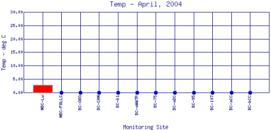 The above map indicates water quality monitoring sites. To view data at a specific site select it from the map with the mouse.