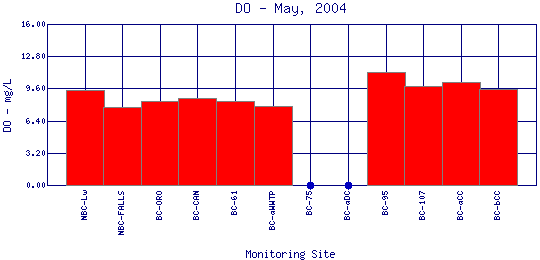 Longitudinal Dissolved Oxygen Profiles for May, 2004