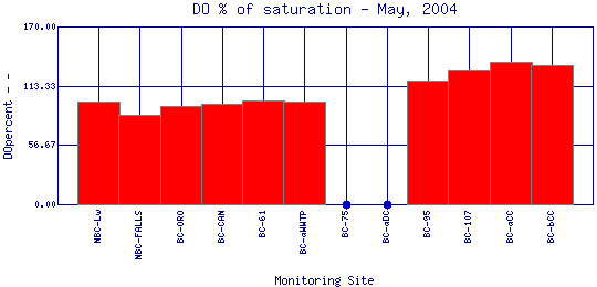 Longitudinal DO Percent of Saturation Profiles for May, 2004