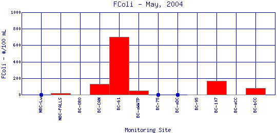 Longitudinal Fecal Coliform Profiles for May, 2004