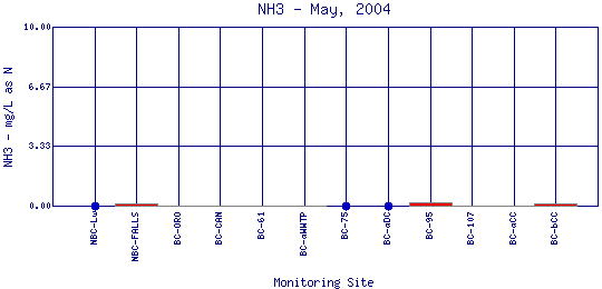 The above map indicates water quality monitoring sites. To view data at a specific site select it from the map with the mouse.