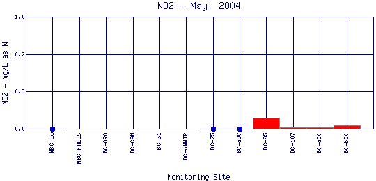 The above map indicates water quality monitoring sites. To view data at a specific site select it from the map with the mouse.