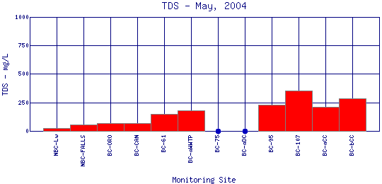 Longitudinal Total Dissolved Solids Profiles for May, 2004