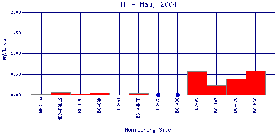 The above map indicates water quality monitoring sites. To view data at a specific site select it from the map with the mouse.