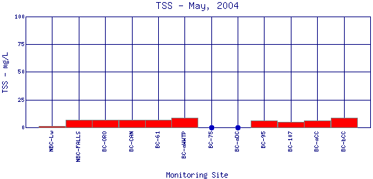 Longitudinal Total Suspended Solids Profiles for May, 2004