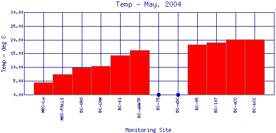 The above map indicates water quality monitoring sites. To view data at a specific site select it from the map with the mouse.