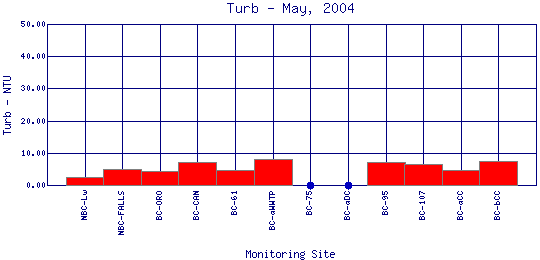 The above map indicates water quality monitoring sites. To view data at a specific site select it from the map with the mouse.