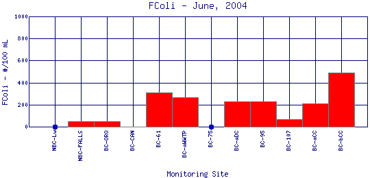 Longitudinal Fecal Coliform Profiles for June, 2004