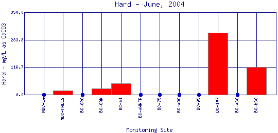 Hardness generally refers to the amount of calcium and magnesium in water. In household use, these cations (ions with a charge greater than +1) can prevent soap from sudsing and leave behind a white scum in bathtubs. In the aquatic environment, calcium and magnesium help keep fish from absorbing metals, such as lead, arsenic, and cadmium, into their bloodstream through their gills. Therefore, the harder the water, the less easy it is for toxic metals to absorb onto gills. Water in the Boulder Creek watershed is generally soft because the water comes mainly from melting snow which is low in minerals and metals.