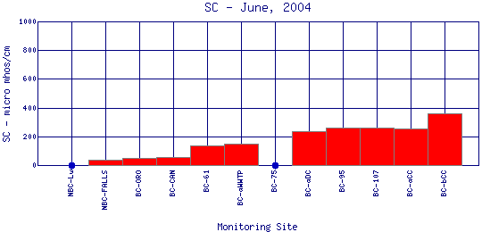 Longitudinal Specific Conductance Profiles for June, 2004