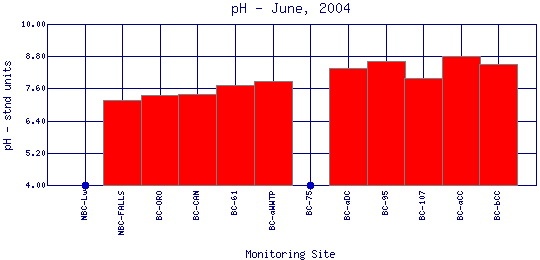 The above map indicates water quality monitoring sites. To view data at a specific site select it from the map with the mouse.