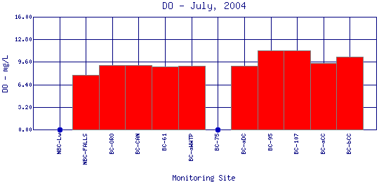 Longitudinal Dissolved Oxygen Profiles for July, 2004