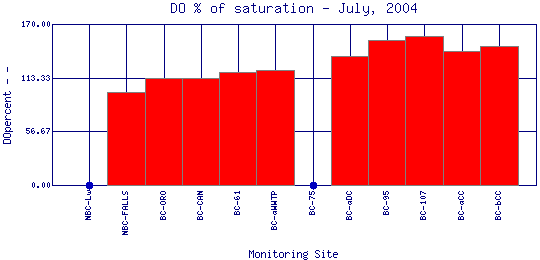 Longitudinal DO Percent of Saturation Profiles for July, 2004