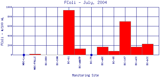 Longitudinal Fecal Coliform Profiles for July, 2004