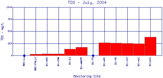 Longitudinal Total Dissolved Solids Profiles for July, 2004