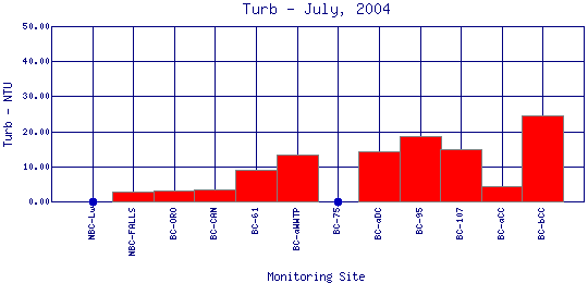 Longitudinal Turbidity Profiles for July, 2004
