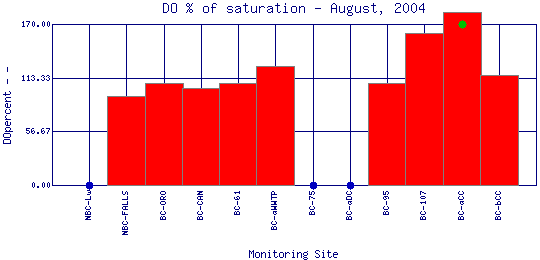 Longitudinal DO Percent of Saturation Profiles for August, 2004