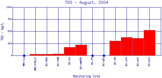Longitudinal Total Dissolved Solids Profiles for August, 2004