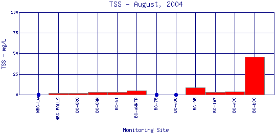 Longitudinal Total Suspended Solids Profiles for August, 2004
