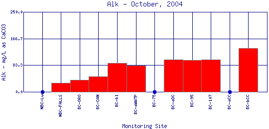 Alkalinity refers to how well a water body can neutralize acids. Alkalinity measures the amount of alkaline compounds in water, such as carbonates (CO3 2-), bicarbonates (HCO3 -), and hydroxides (OH-). These compounds are natural buffers that can remove excess hydrogen ions that have been added from sources such as acid rain or acid mine drainage. Alkalinity mitigates or relieves metals toxicity by using available HCO3 - and CO3 2- to take metals out of solution, thus making it unavailable to fish. Alkalinity is affected by the geology of the watershed; watersheds containing limestone will have a higher alkalinity than watersheds where granite is predominant. The Boulder Creek Watershed is composed primarily of granite rocks, thus the water has a lower alkalinity content.