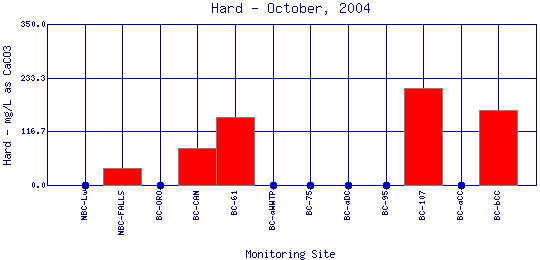 Hardness generally refers to the amount of calcium and magnesium in water. In household use, these cations (ions with a charge greater than +1) can prevent soap from sudsing and leave behind a white scum in bathtubs. In the aquatic environment, calcium and magnesium help keep fish from absorbing metals, such as lead, arsenic, and cadmium, into their bloodstream through their gills. Therefore, the harder the water, the less easy it is for toxic metals to absorb onto gills. Water in the Boulder Creek watershed is generally soft because the water comes mainly from melting snow which is low in minerals and metals.