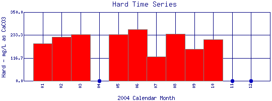 Total Hardness Time Series for 2004 Boulder Creek at 107th St |